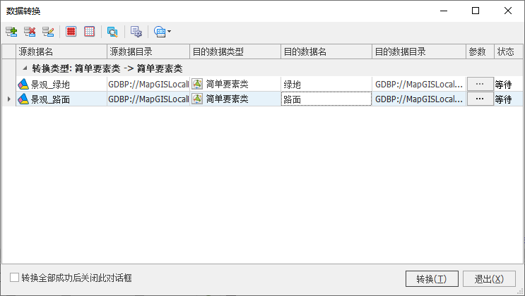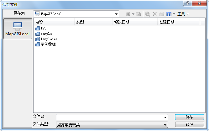 对于6x文件,图层在选择保存路径时,只能保存在本地磁盘位置;对于简单要素类图层、注记类图层,只能保存在MapGIS GDBCatalog目录数据下数据库中的位置。