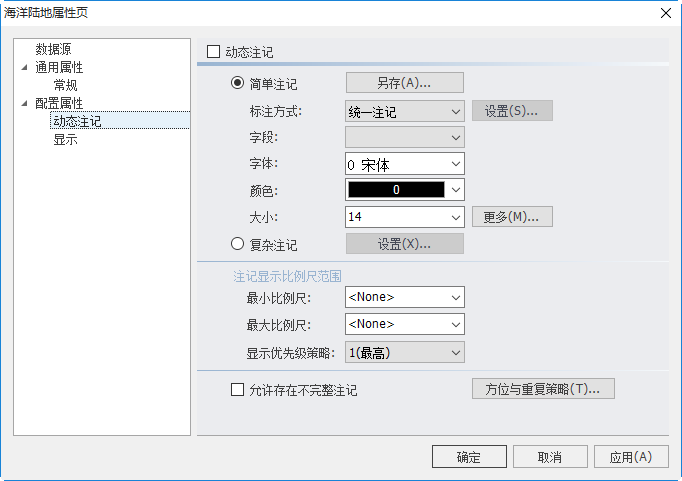 【动态标注】:用于设置边线元素的动态注记,具体各参数的设置方式可参见“点线区及注记图层”中动态注记设置;