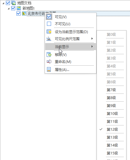 5. 添加瓦片服务后,在右键->当前显示 中,可快速切换当前显示级别。