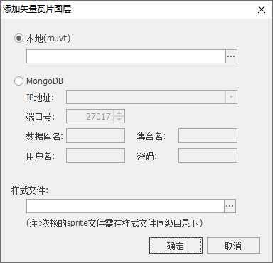 MapGIS支持直接添加矢量瓦片图层对其进行预览,既可以添加本地矢量瓦片数据(*.muvt、*.vtdf),也可以添加MongoDB中的矢量瓦片数据。
