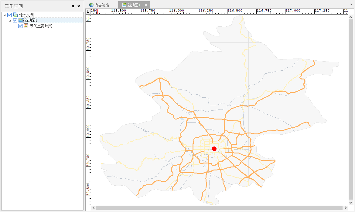 4. 完成添加服务图层的设置,点击"确定"执行服务图层的添加。添加成功后,您可以在地图数据视图中对各级瓦片数据进行浏览查看;