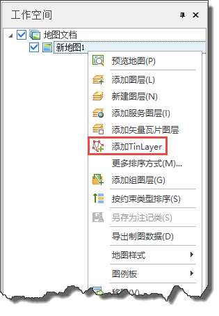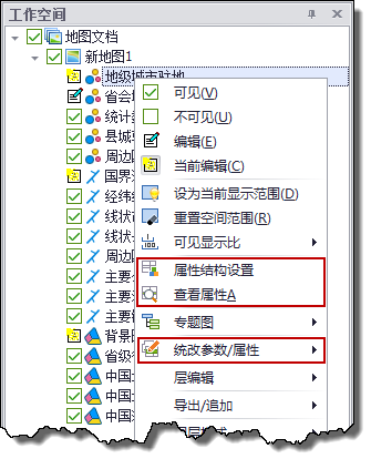在“地图”节点的右键菜单中,提供了对地图数据的各种管理功能。新建图层是一种最基本的管理,以下为新建图层的具体操作说明。