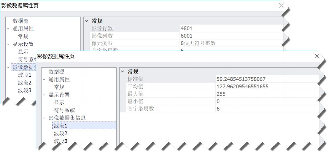 (3)“波段信息”选项卡:通过“影像数据集信息”、“波段”节点浏览影像数据集信息。