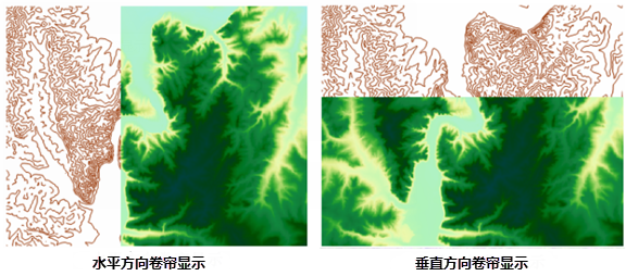 3. 点击“卷帘”功能,在地图视图中按住鼠标左键,上下方向或左右方向拖动鼠标,即可查看上下两层数据的文件;