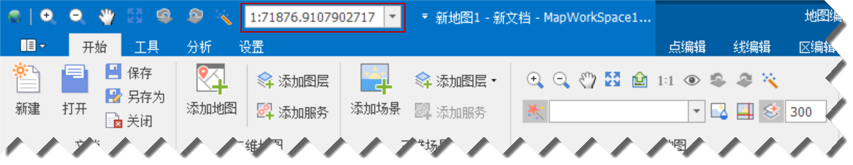 1. 在地图视图中查看地图数据时,可对地图数据进行缩放操作。“当前窗口的比例尺”中会显示地图的当前显示比例尺,缩放过程中会实时变化;