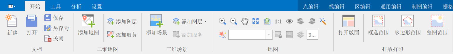 提供地图的新建、打开、保存、关闭功能,以及地图打印、光栅文件打印功能。