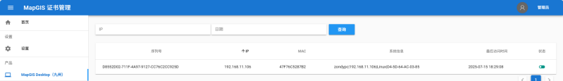3. 插入硬key的USB设备,在MapGIS证书管理界面可查看到加密狗设备信息;