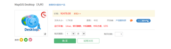 2. 在“云交易中心”选择 MapGIS Desktop(九州) 产品,点击“购买”;
