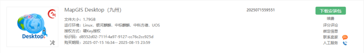当“云交易中心”中MapGIS Desktop(九州)产品更新后,用户可在“已购”信息中获取最新的产品安装包,解压后直接替换原始安装环境即可。