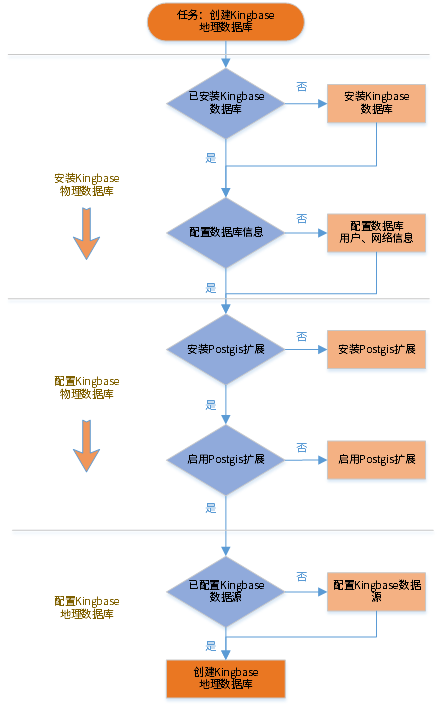 下图为MapGIS使用KingbaseES数据库的流程图: