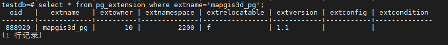 select * from pg_extension where extname='mapgis3d_pg';