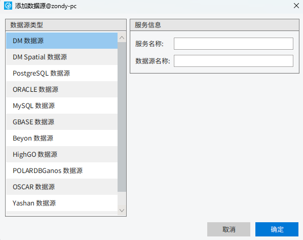 下面以创建DM数据源为例,讲解附加网络数据库的全过程。