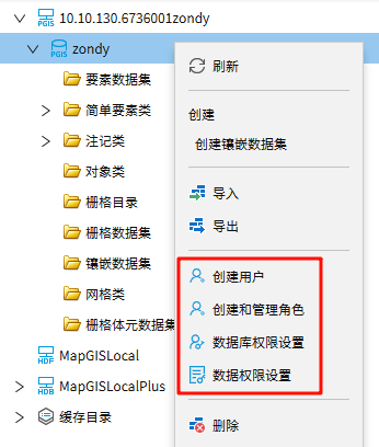 MapGIS数据库用户管理可创建多个用户/角色,并为这些用户/角色授予读写数据的权限。