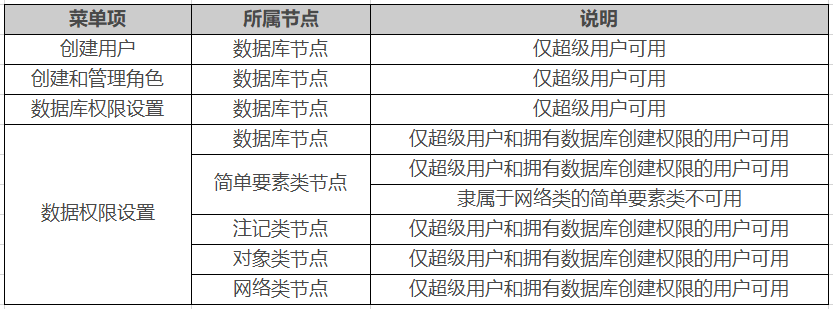 | 创建权限 | 支持新建数据。除超级用户外,其他用户仅支持删除自己创建的数据。 |