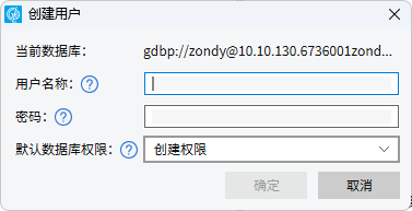 用于向数据库中添加新的数据库用户(仅限当前连接用户为超级用户,即超级用户具有创建权限),创建用户同时会创建同名的模式,并将该模式的所有者设置为该新建用户,不支持删除用户、修改用户密码。