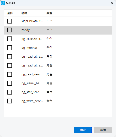 目前,仅支持对PostGIS数据库进行数据库用户管理。