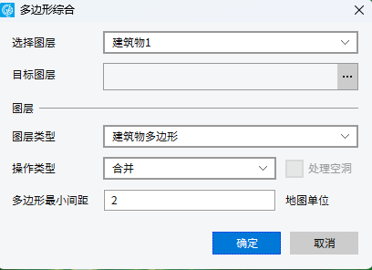 多边形合并的最小间距:当多边形间距小于此参数值时拉框选择实现合并。