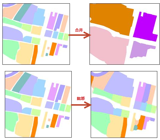 多边形自动综合是对多边形面要素进行自动化合并、毗邻操作。