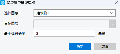 1. 点击“地图”条上的“地图综合”-“多边形综合”菜单下选择“自动提取中轴线”功能,弹出多边形中轴线提取对话框。