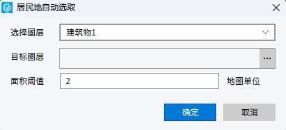 1. 点击“地图”条上的“地图综合”-“多边形综合”菜单下选择“居民地自动选取”功能,弹出居民地多边形选取对话框。
