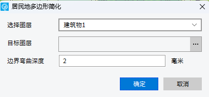 2. 在对话框中选择需要进行综合的图层,设置“边界弯曲深度”以及“目标图层”(即结果图层)的保存路径和名称。系统将区图元边界上小于“边界弯曲深度”的部分删除,大于该深度的弯曲将保留。