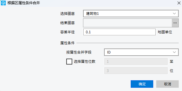 【按属性字段合并】:若不勾选选择属性位数,则在容差范围内,属性值相同的多个区图元将合并成为一个区图元。若勾选,则在容差范围内按照设置的属性位数值相同的区图元合并为一个区图元。