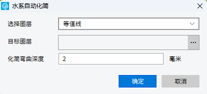 2. 在对话框中选择需要进行综合的图层,设置“化简弯曲深度”以及“目标图层”(即结果图层)的保存路径和名称。系统将曲线上弯曲深度小于该限定值的部分进行化简。