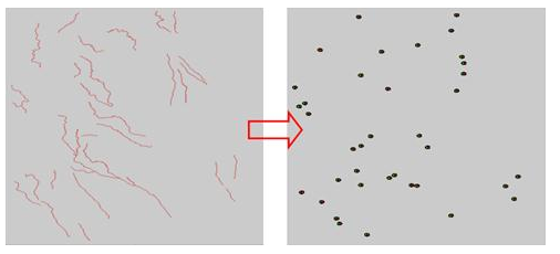 抽稀点功能是指根据指定的抽稀半径,以数据集中的一个点为中心,其圆内所有的点都会被抽稀,然后使用一个点表示所有点,抽稀后的点不一定是被抽稀点集的中心点,具有一定的随机性。