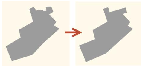 建筑物多边形化简主要对规则的建筑物多边形进行化简操作,化简后的目标轮廓比较规则,一般成直角状。