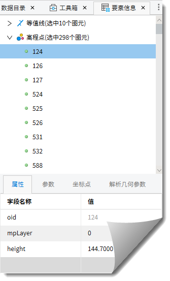 3. 用户也可先使用"选择"工具选中图元,然后使用"要素信息"功能并进入"参数"选项卡,对话框中将显示图元参数信息;