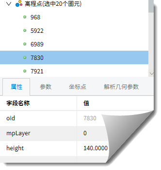 4.若在上方窗口选择某图元节点,则下方窗口将同步显示该图元的属性、参数、坐标点、解析几何参数等信息。