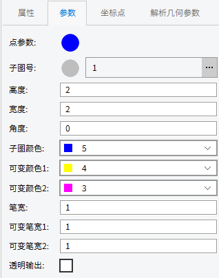 - 【子图颜色\可变颜色】:用户可在此设置颜色参数,改变符号中图元的子图颜色,子图的具体显示颜色请参考"符号库管理";