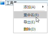 1. 选择某个"工具箱"、"工具集"节点,右键可启动"重命名"命令,修改其名称。