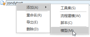 1. 添加模型。选择某个"工具箱"或"工具集"节点,右键"添加"->"模型"功能,弹出如下所示对话框: