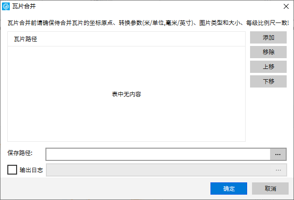 3. 设置合并后瓦片的保存路径,点击“合并”按钮,执行瓦片的合并。