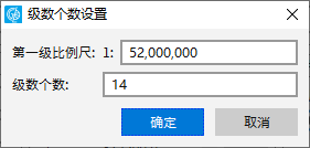通过“比例尺信息”栏右侧的【添加】按钮,可以添加瓦片级数,同时系统会以上一级比例尺的2倍的比例计算出新比例尺,另外,用户在比例尺栏中点击比例尺,也可以手动输入新的比例尺;点击【删除】按钮,可以删除选中的瓦片级数;点击【默认】按钮,会弹出“级数个数设置”对话框,用户可以设置系统默认的级数个数和第一级比例尺,如下图所示: