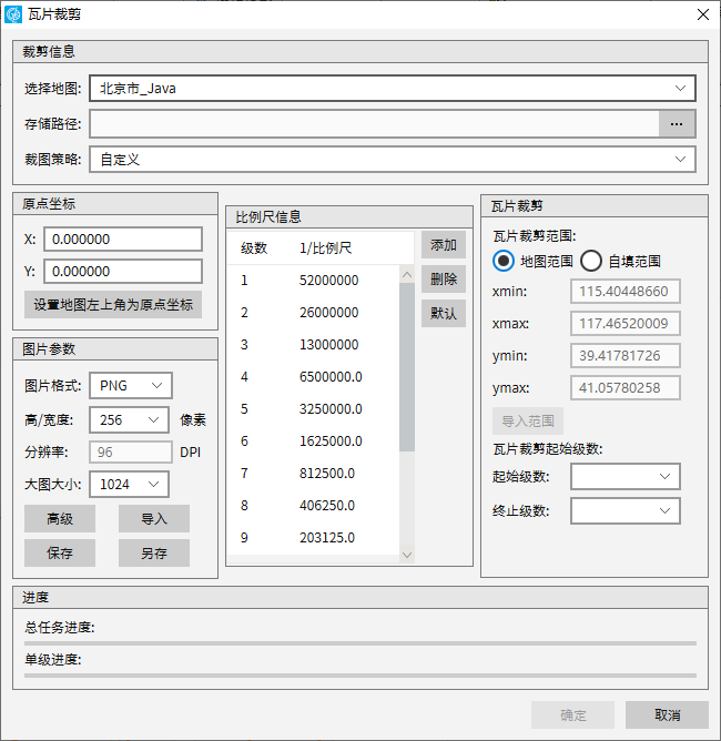 - 【自定义】:可以根据需求手动输入裁剪级别及比例尺信息,最大级数可到30级;