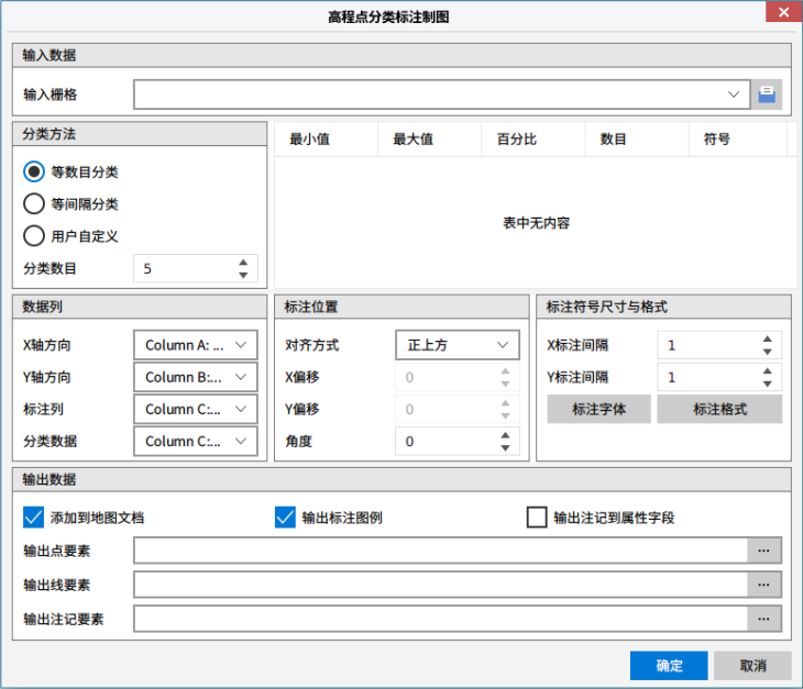 3. 点击“确定”执行高程点分类标注制图操作,点击“取消”可取消当前操作。
