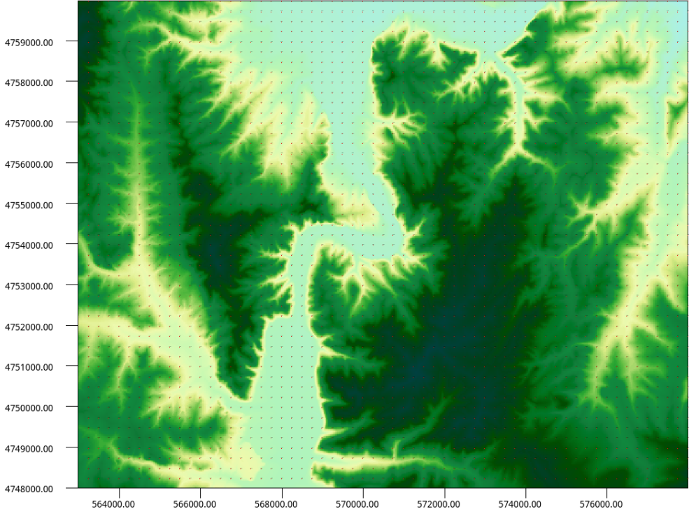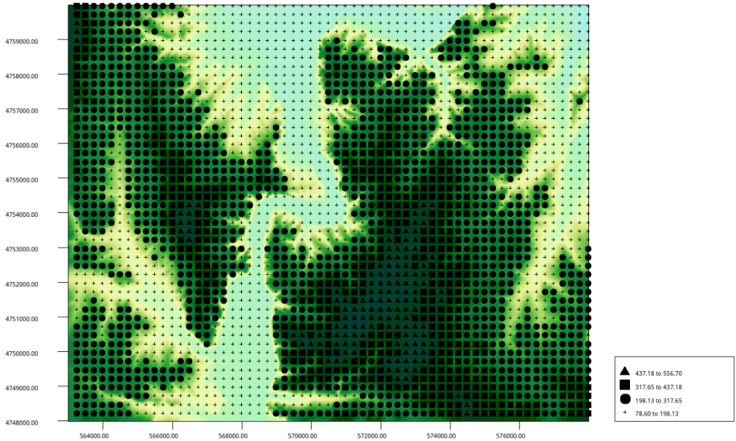 该功能与上面高程点标注制图一样也可根据当前栅格数据将其高程点以象征性的符号输出为图形,以方便用户了解数据的分布情况,唯一的区别在于是否对高程点分类制图。