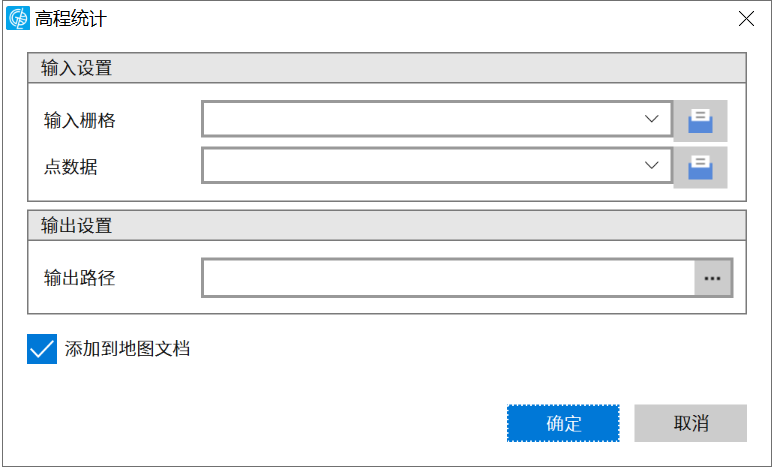 - 【输出路径】:设置高程统计结果的数据名和保存路径。
