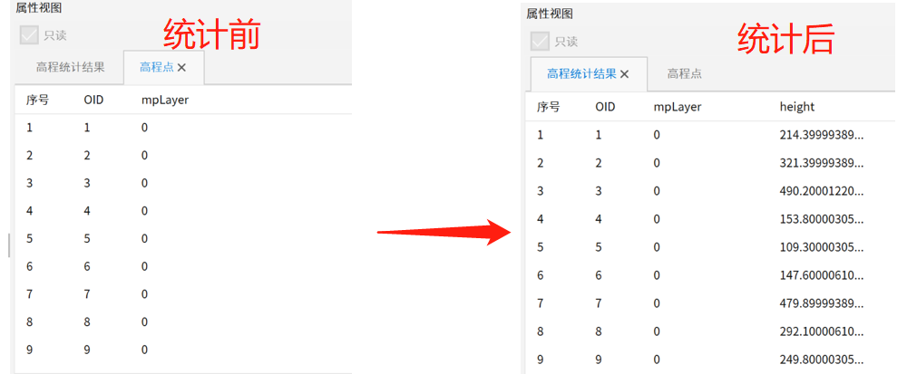 3. 点击“确认”执行高程统计操作,点击“取消”则取消当前操作。