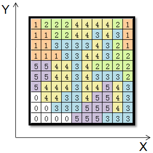 - 图形坐标:用格网所代表的实地空间位置来表示栅格地理信息,横向为x轴,纵向为y轴。