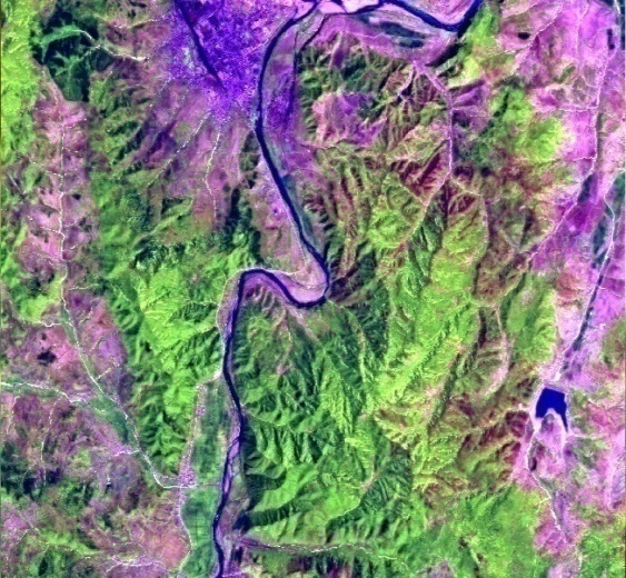 专题数据和图像数据的最大区别在于,专题数据每一个像元值代表的某种测量值,注重于每一个像元的分析处理;但图像数据大多是通过系列像元的组合显示来表现图像地物的显示效果。因此,在查看图像数据时,可看到明显的地貌特征,如河流、城镇、林地。