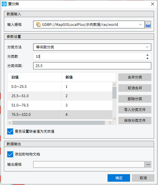 5. 完成所有分类信息的设置后,点击“确定”执行重分类操作,点击“取消”则取消当前操作。