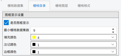 - 【最小栅格数据集数】:若添加的栅格目录所包含的栅格数据集数>=最小栅格数据集数时,添加的栅格目录进行图框显示;否则,栅格目录显示影像;