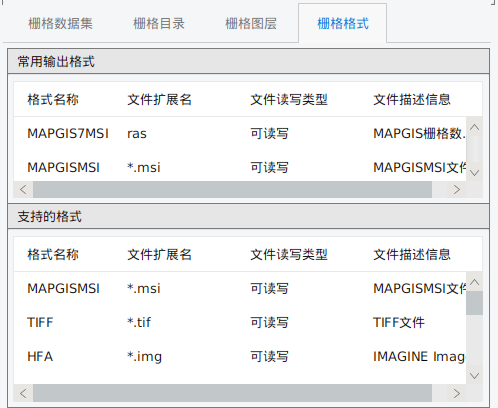 此处罗列了可导入/导出的栅格数据格式。