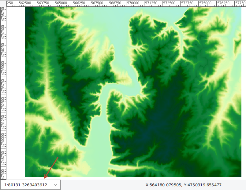 如下图所示,1:1米水平比例尺和1:10000毫米水平比例尺下,同一个影像数据的标尺刻度值不同。