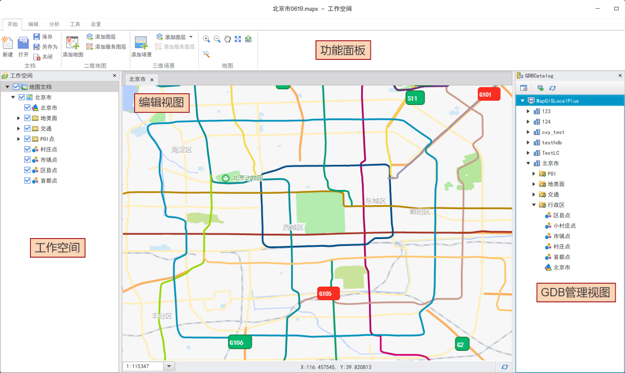 工作空间以目录树的形式组织地图,提供地图的新建、保存及编辑等基础管理功能。