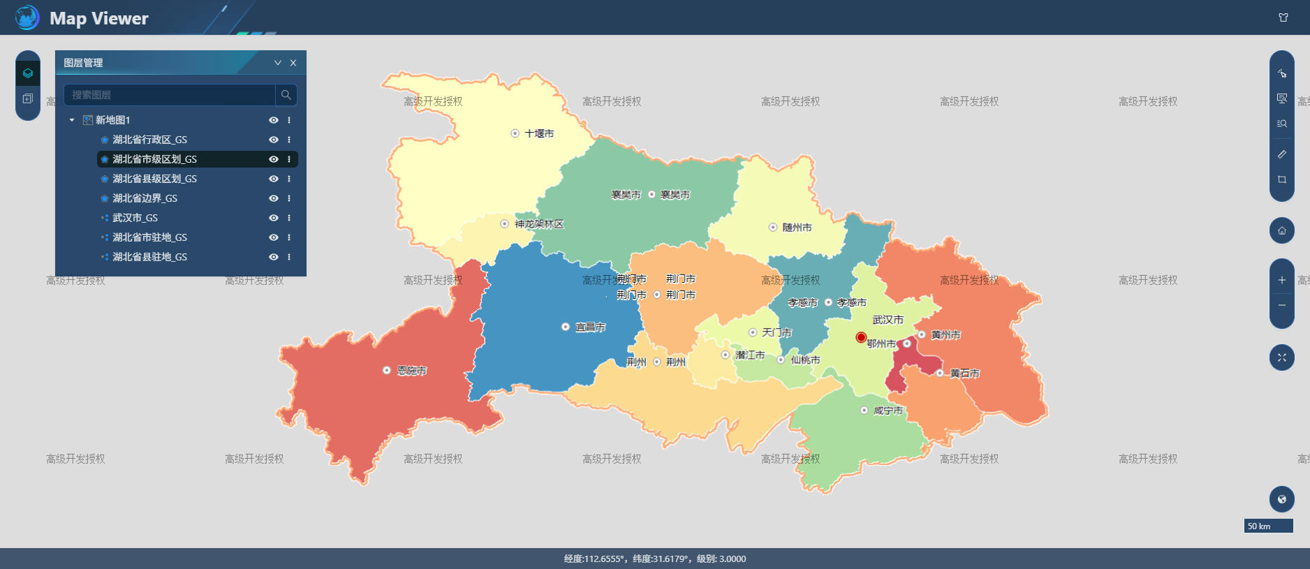 - 发布地图服务成功后,页面重新回到服务列表。点击当前服务右侧的"预览"按钮,可进入 Map Viewer 页面。具体操作可参考"服务预览"。