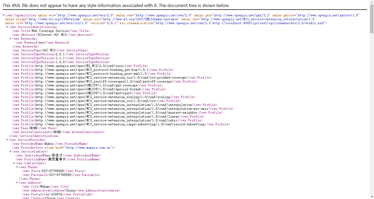 发布WCS服务成功后,点击进入服务详情页面,点击WCS服务的服务地址,可进入查看WCS服务基地址页面。